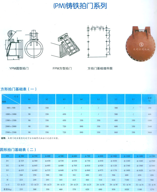 鑄鐵拍門用于單向水流的圓形和方形出水口,結(jié)構(gòu)嚴(yán)密,工作可靠,無需人力操作啟閉力來自水源壓力,當(dāng)鑄鐵拍門內(nèi)的水壓大于外側(cè)壓力則開啟,反之則關(guān)閉。