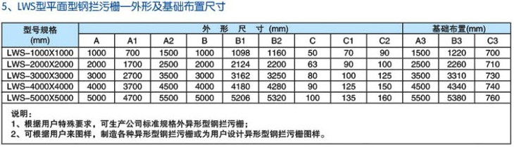 LWS型平面型鋼攔污柵,由型鋼框架、柵條經(jīng)焊接組成。該平面型鋼攔污柵具有外形美觀、結(jié)構(gòu)簡單、安裝方便、操作安全、攔漂浮物強、使用壽命長、維修費用低等優(yōu)點。