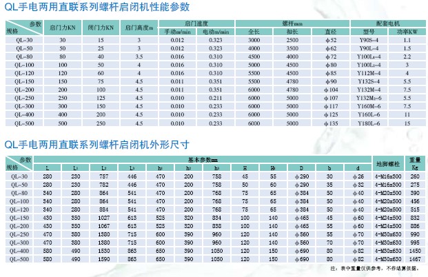 直聯(lián)式啟閉機(jī),直聯(lián)螺桿式啟閉機(jī)有QP系列平面閘門卷?yè)P(yáng)式啟閉機(jī)、QPK系列卷?yè)P(yáng)式快速閘門啟閉機(jī)、QH系列弧形閘門啟閉機(jī)、QL直聯(lián)式螺桿啟閉機(jī)等四個(gè)系列。均分單、雙吊點(diǎn),單獨(dú)、集中驅(qū)動(dòng),和手搖(卷?yè)P(yáng)啟閉機(jī)2X250KN以下有)、電動(dòng)兩用。